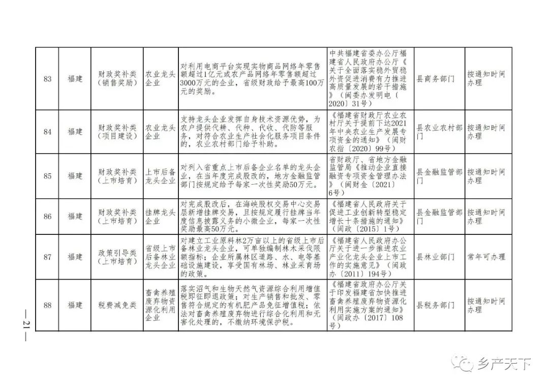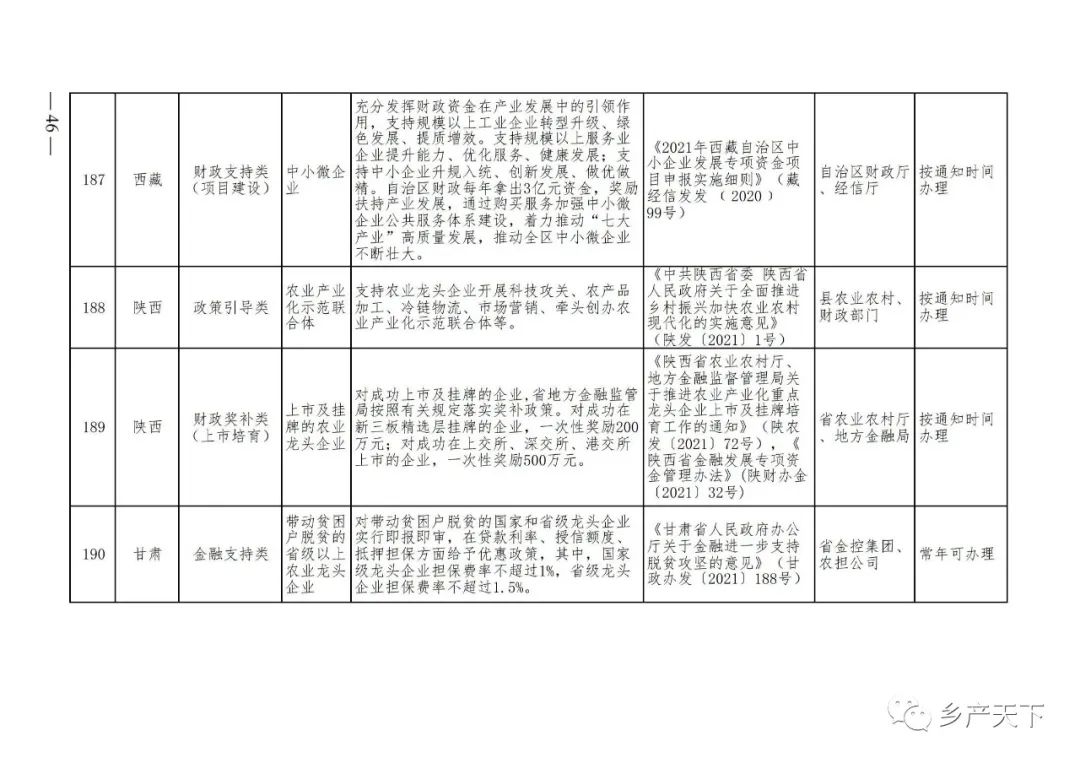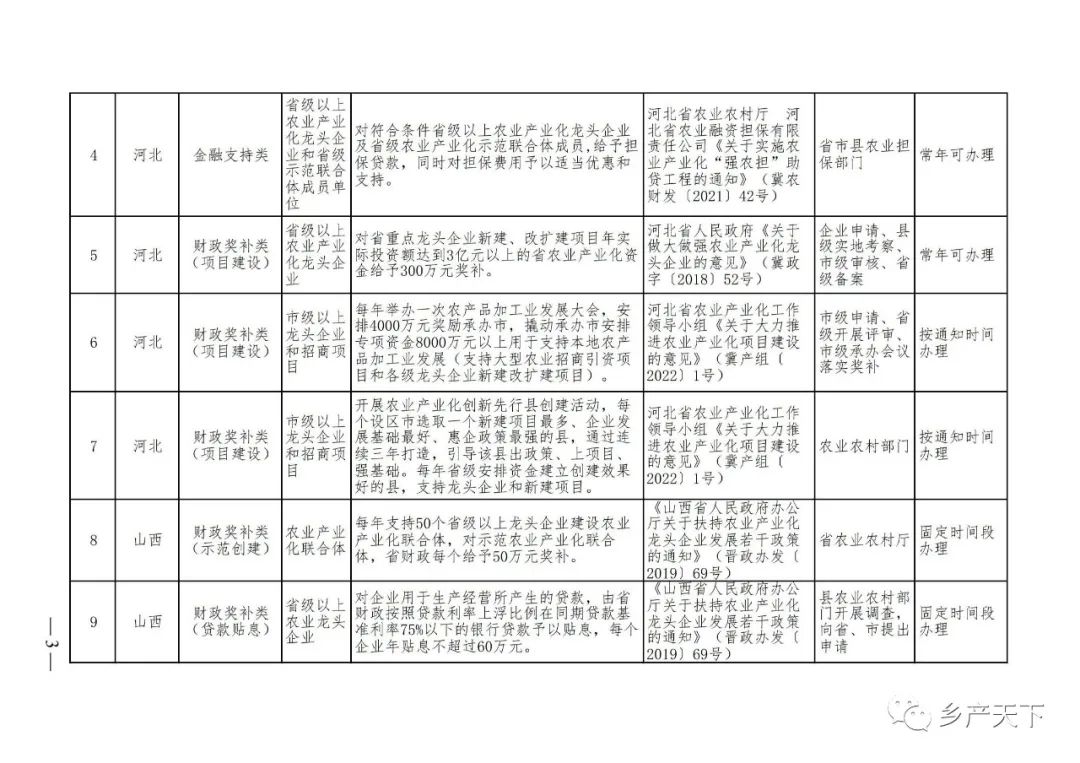 為加強對農業產業化龍頭企業的精準服務,農業農村部鄉村產業發展司收集了各省(區、市)對龍頭企業的支持政策,于近期印發《農業產業化龍頭企業支持政策清單》(簡稱《清單》),供各地互相參考學習。