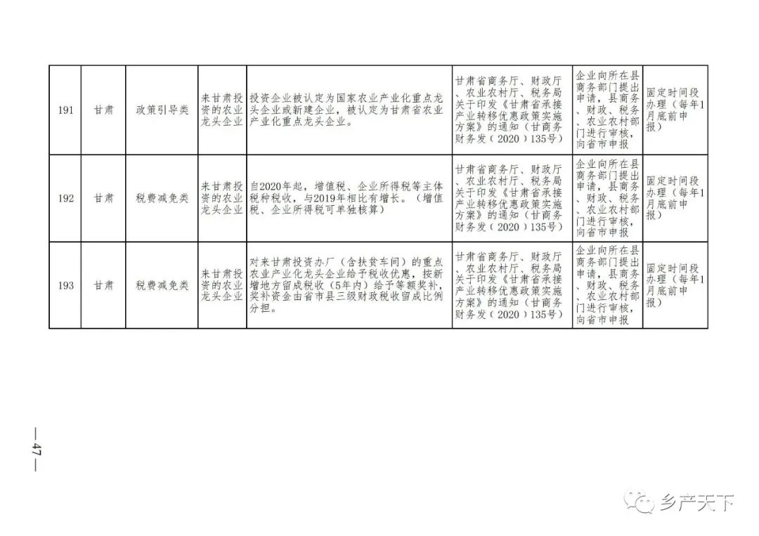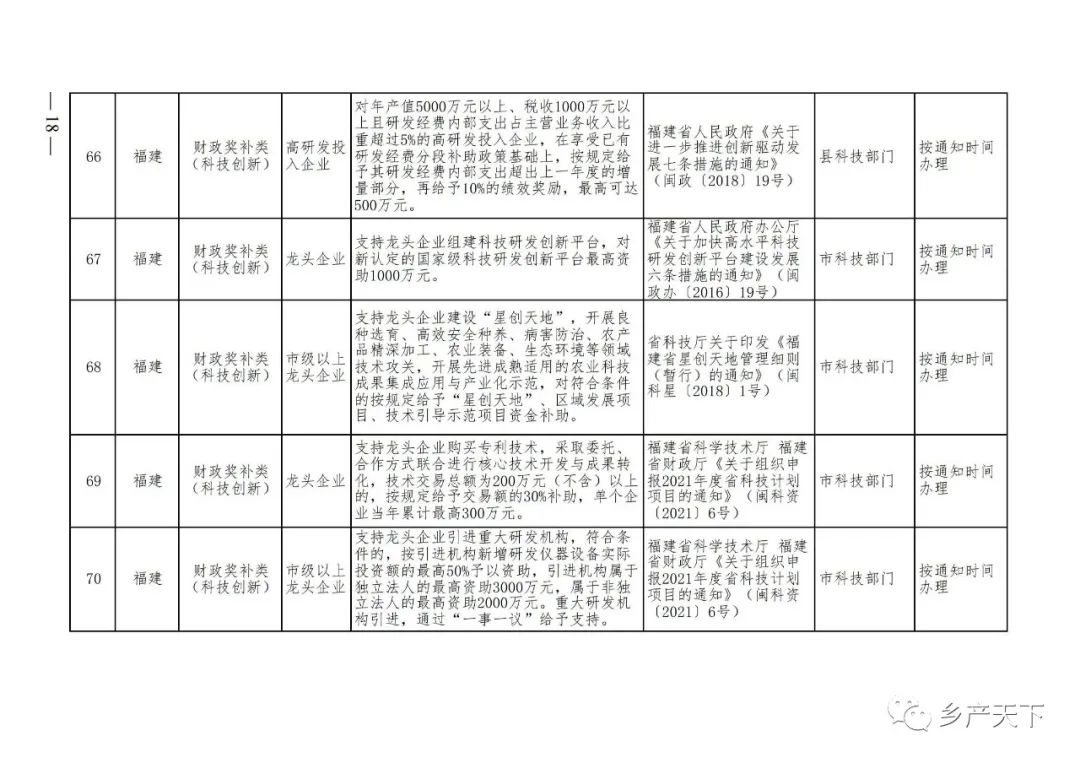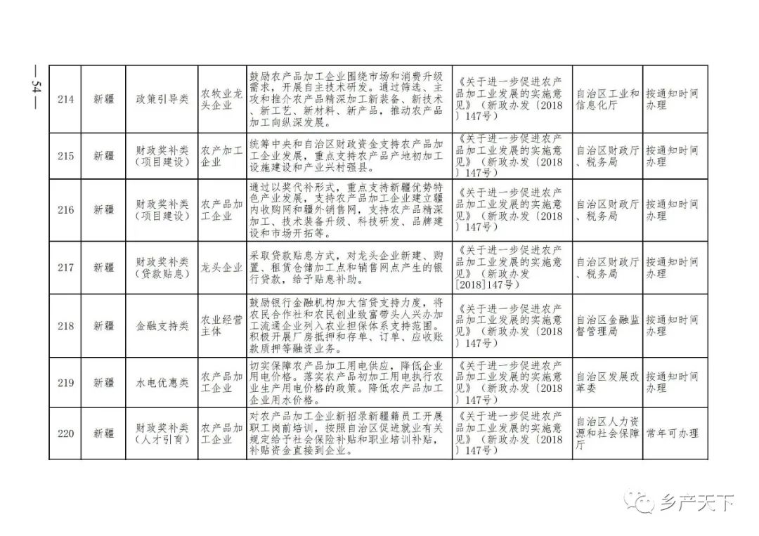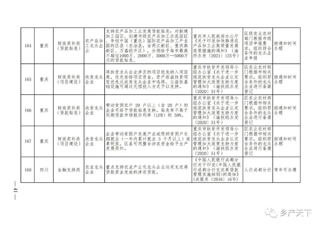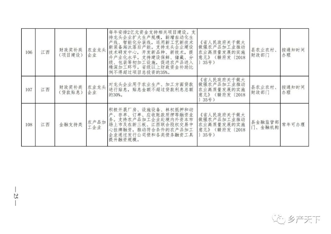 《清單》按照“政策類別、支持對象、具體內容、政策依據、辦理部門、辦理時間”進行梳理,共涉及“財政獎補、金融支持、用地保障、稅費減免、水電優惠、政策引導”等六大類229條政策。《清單》通知,各地支持政策發生變化,要及時反饋,鄉村產業發展司將定期更新發布。
